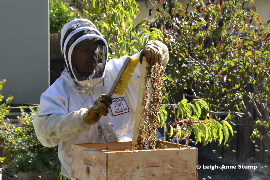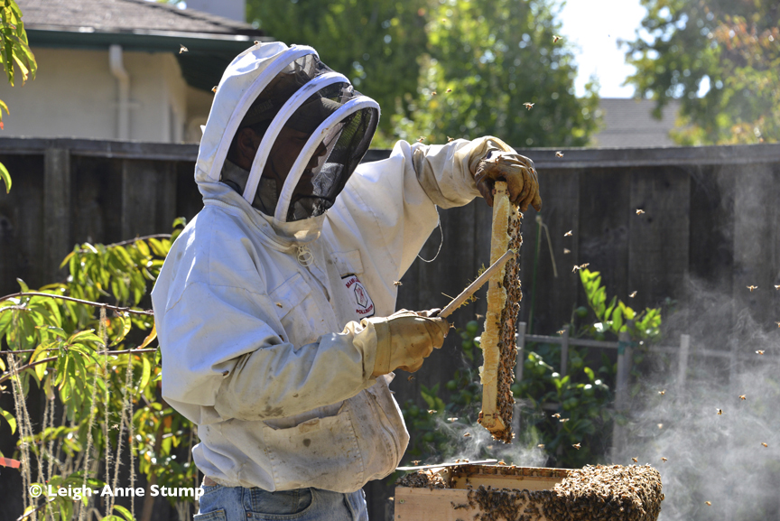 So, enjoy your honeybees, enjoy any honey you reap and enjoy these pictures from a harvest I did earlier in the month in Alameda. The photos are all courtesy of Leigh-Anne Stump who was invited by her friend to participate in the harvest. Her pictures did an amazing job of capturing the essence of a small, local harvest.