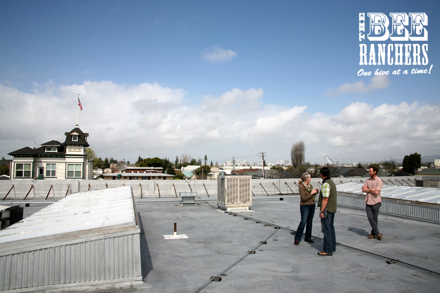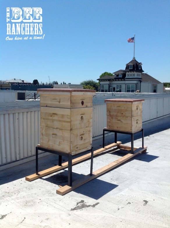 The pic above is one of several hives that Alameda Marketplace has purchased (and put on display) from The Bee Ranchers and that will be maintained by our Ranch Foreman, Mike Vigo. The hives have been installed on Alameda Marketplace’s rooftop. More about the collaboration between Alameda Marketplace and The Bee Ranchers in a future post.