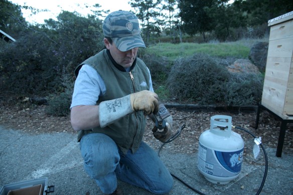 Cup-o-coffee, CHECK! Warm breakfast burrito, CHECK! Full tank of Blue Rhino, CHECK! Heavy duty welding gloves, CHECK! Branding iron, CHECK! A dozen plus bee boxes, CHECK!